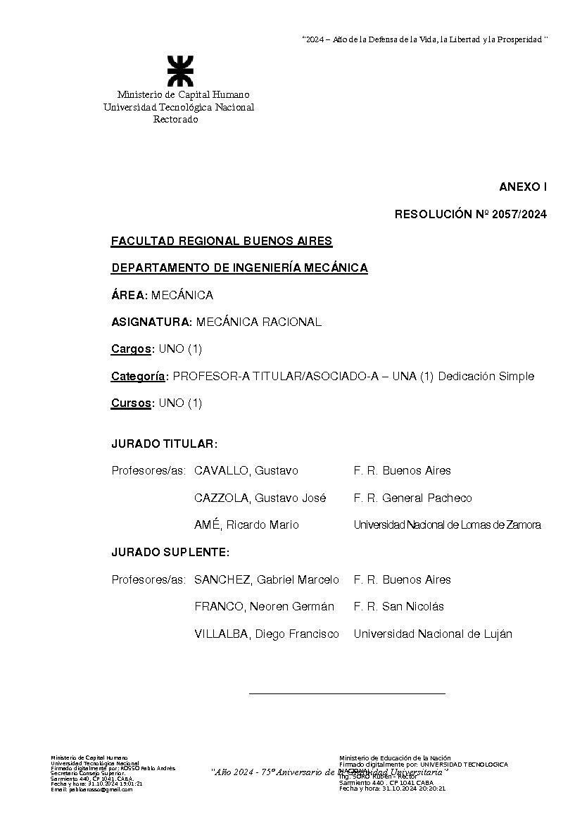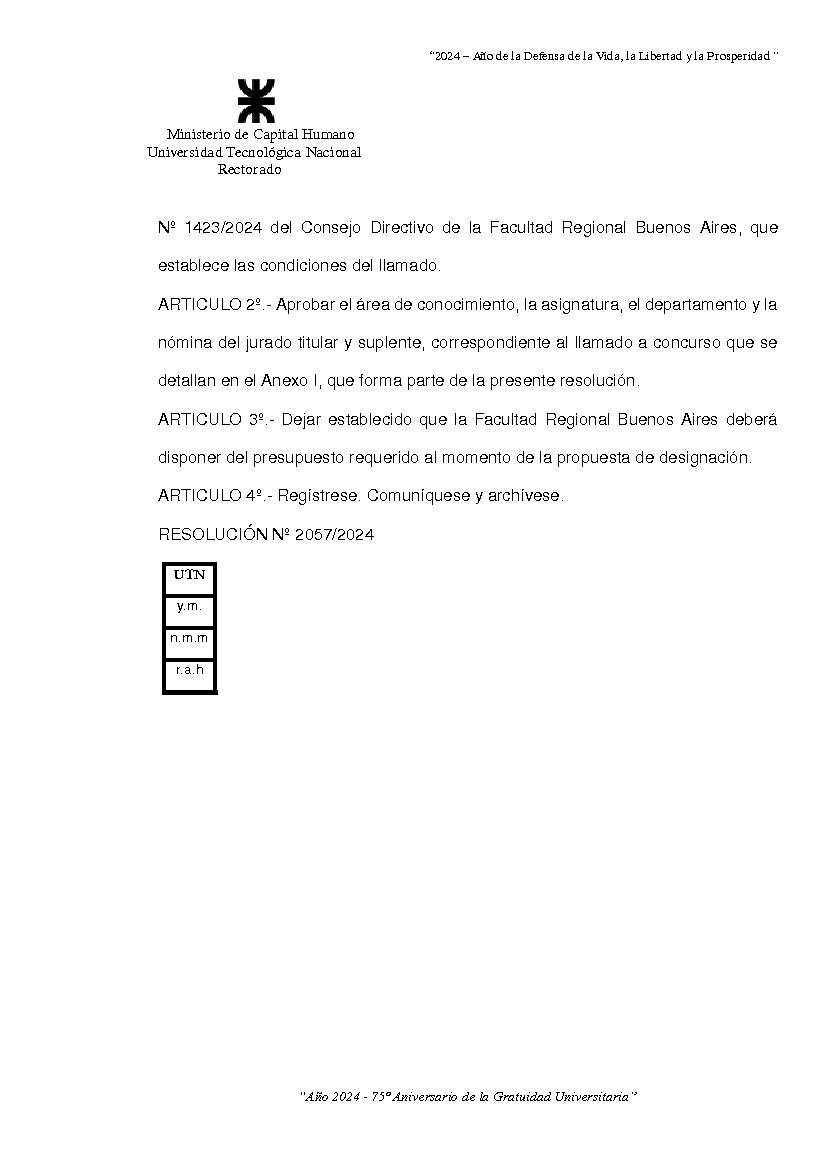 Autoriza llamado a concurso para cubrir cargo de Profesor/a en la cátedra y especialidad indicada en la R.C.D. Nº 1423/2024. (F.R. Buenos Aires)